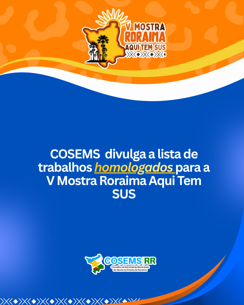 TRABALHOS HOMOLOGADOSJá está disponível a lista de trabalhos homologados da V Mostra Roraima Aqui Tem SUS.